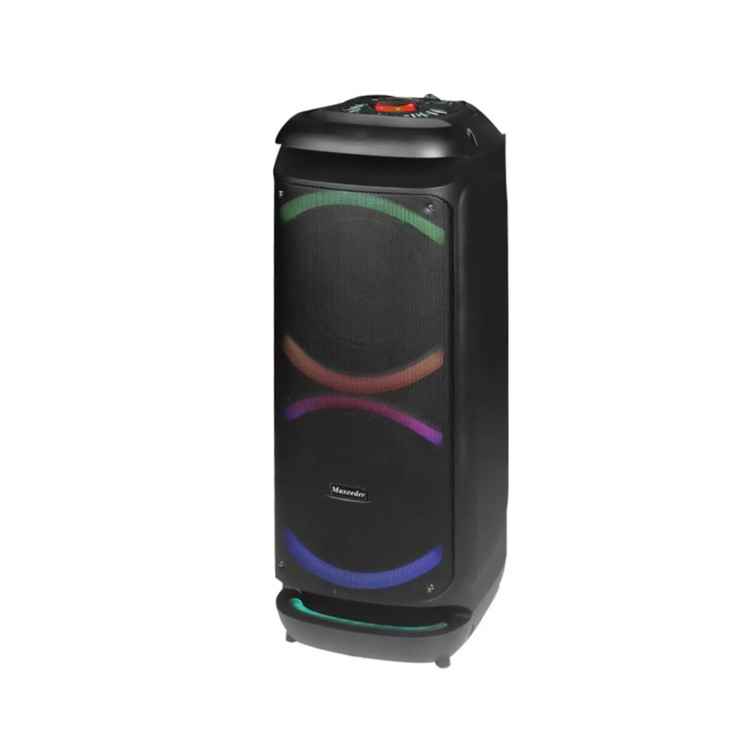 TWS(قابلیت اتصال دو دستگاه با بلوتوث)-قابلیت اولویت میکروفون (Microphone priority)-قابلیت حذف صدای خواننده -دارای کلید سه حالته (باتری، خاموش، برق شهر)-دارای رقص نور چرخشی RGB دور سابها- دارای ورودی 11.1 ولت 12 Ah -دارای چرخ جهت حمل آسان-دارای دو ساب 10 اینچ و تیوتر-نمایش حالت باتری-دارای میکروفون بیسیم با صفحه نمایش دیجیتال